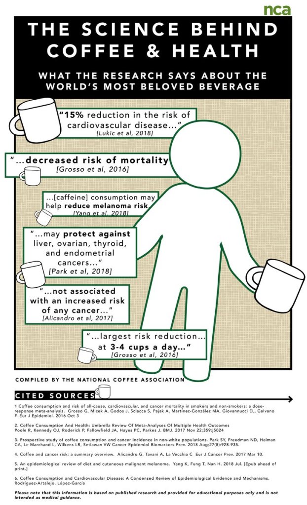 Among the many major leading health authorities and independent organizations that have highlighted coffee’s unique health benefits is the World Health Organization (WHO). After a thorough review of existing evidence in 2015, WHO’s International Agency for Research on Cancer (IARC) confirmed that drinking coffee is associated with a reduced risk of cancers of the liver and uterine endometrium.